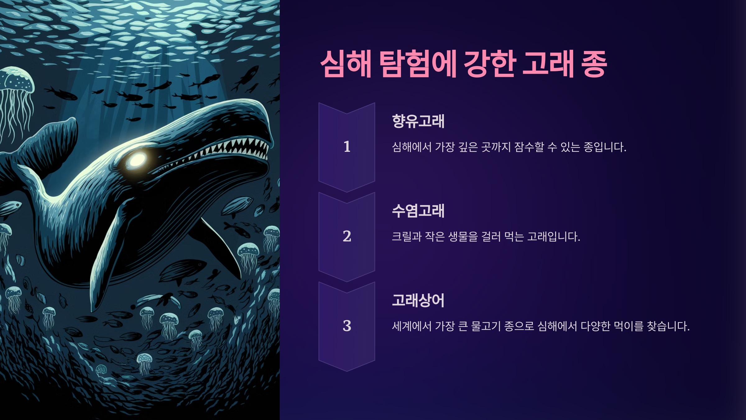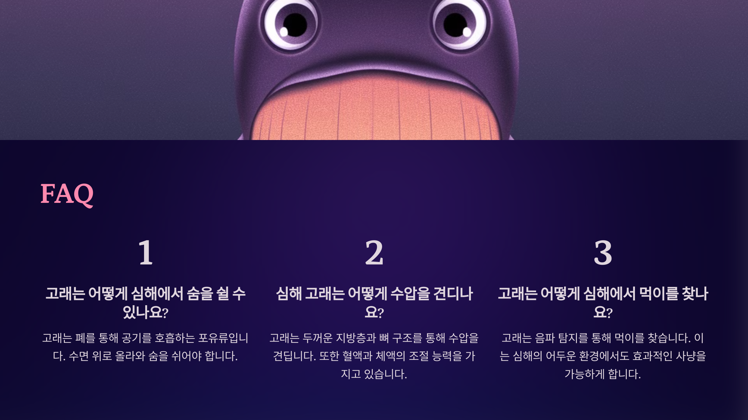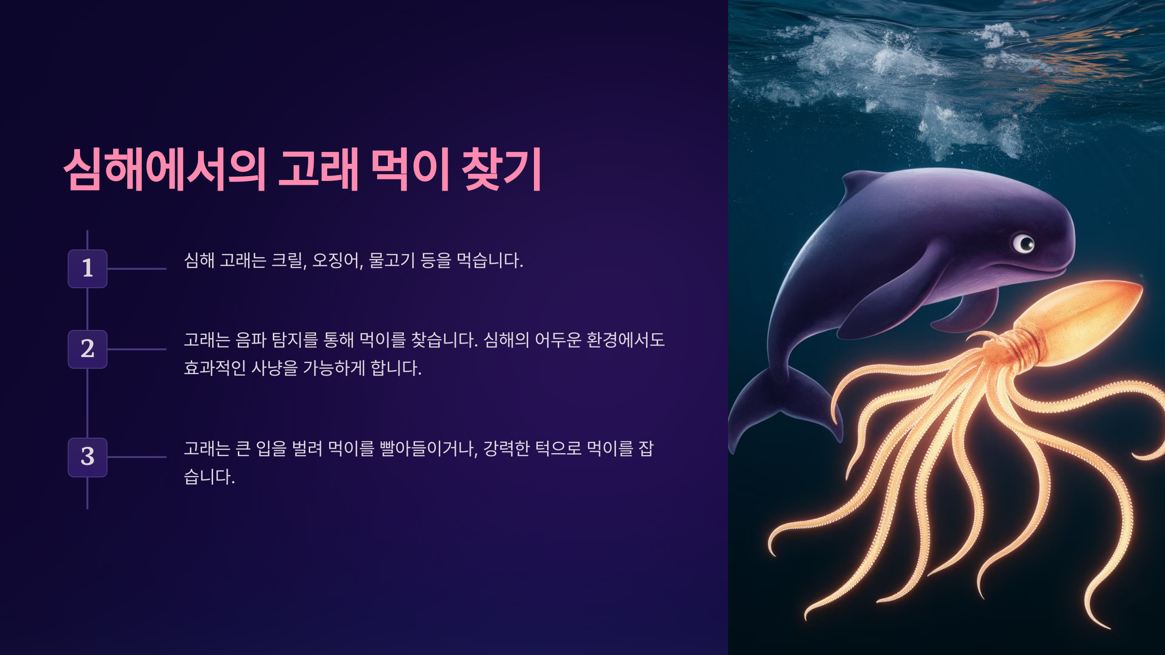 이제 고래의 심해 탐험 비밀을 하나씩 풀어가 볼게요.
