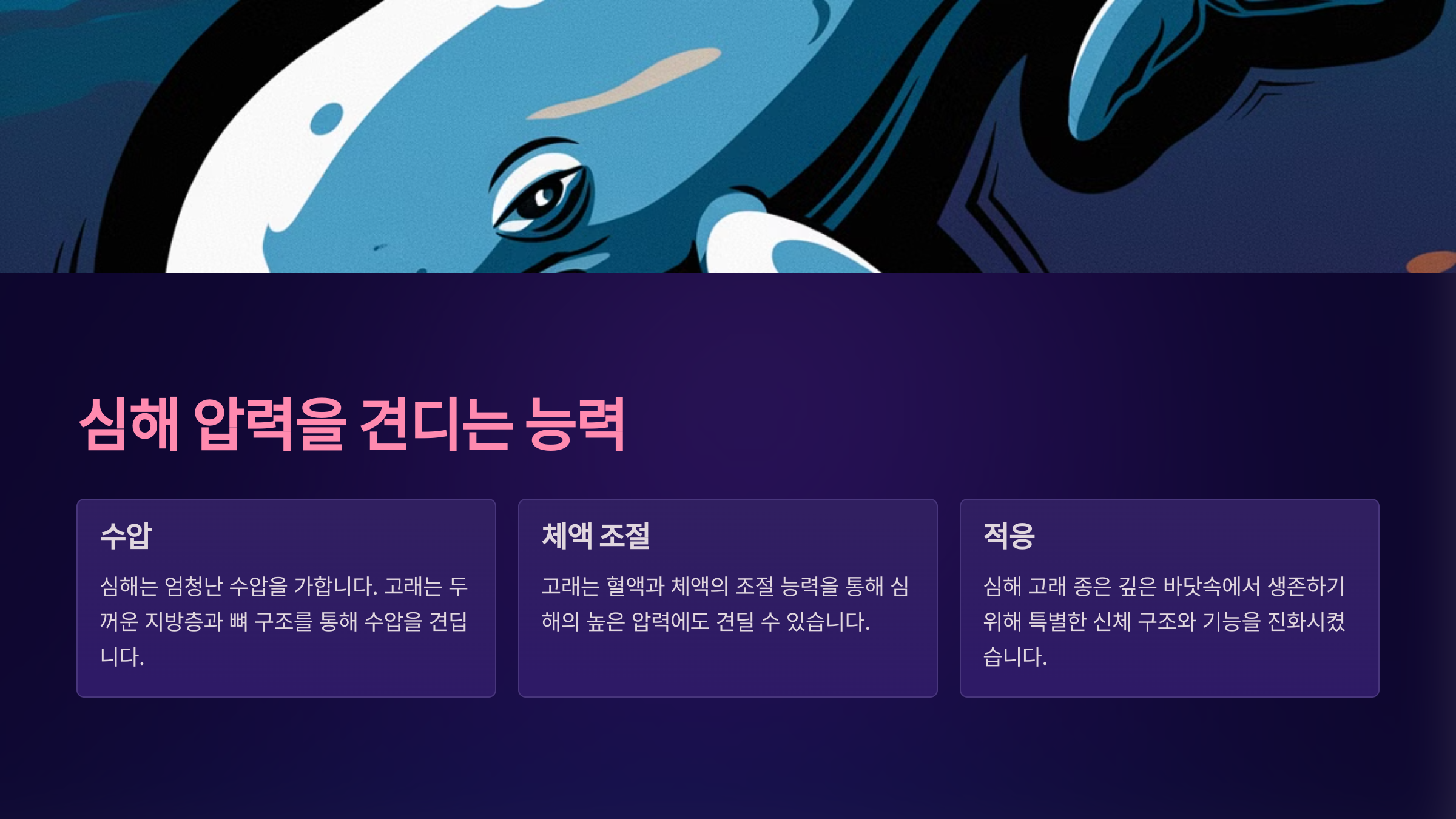 이제 고래의 심해 탐험 비밀을 하나씩 풀어가 볼게요.