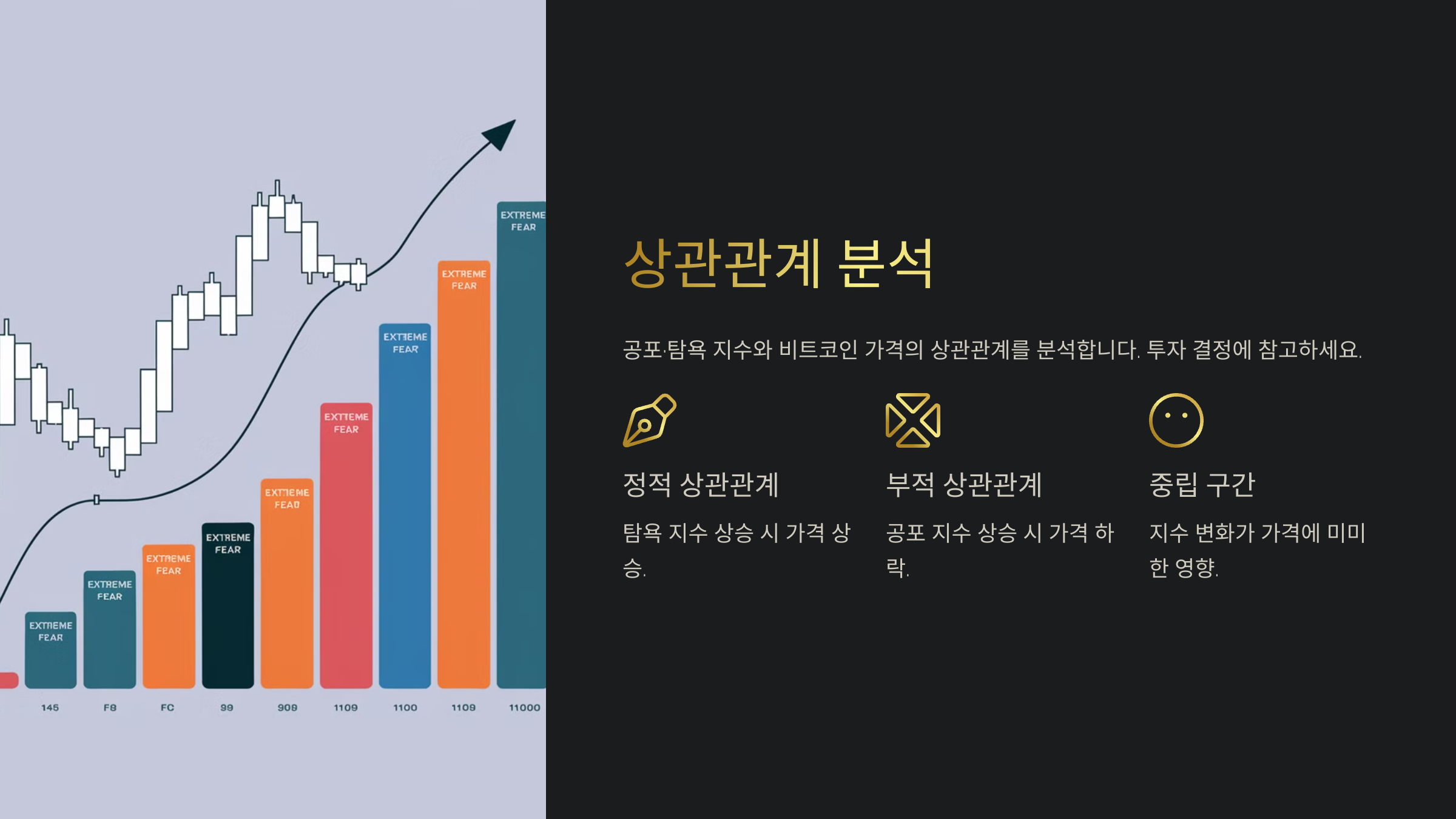 • 반등 패턴: 공포지수 20 이하 구간에서 비트코인 반등 확률은 83%에 달했습니다.