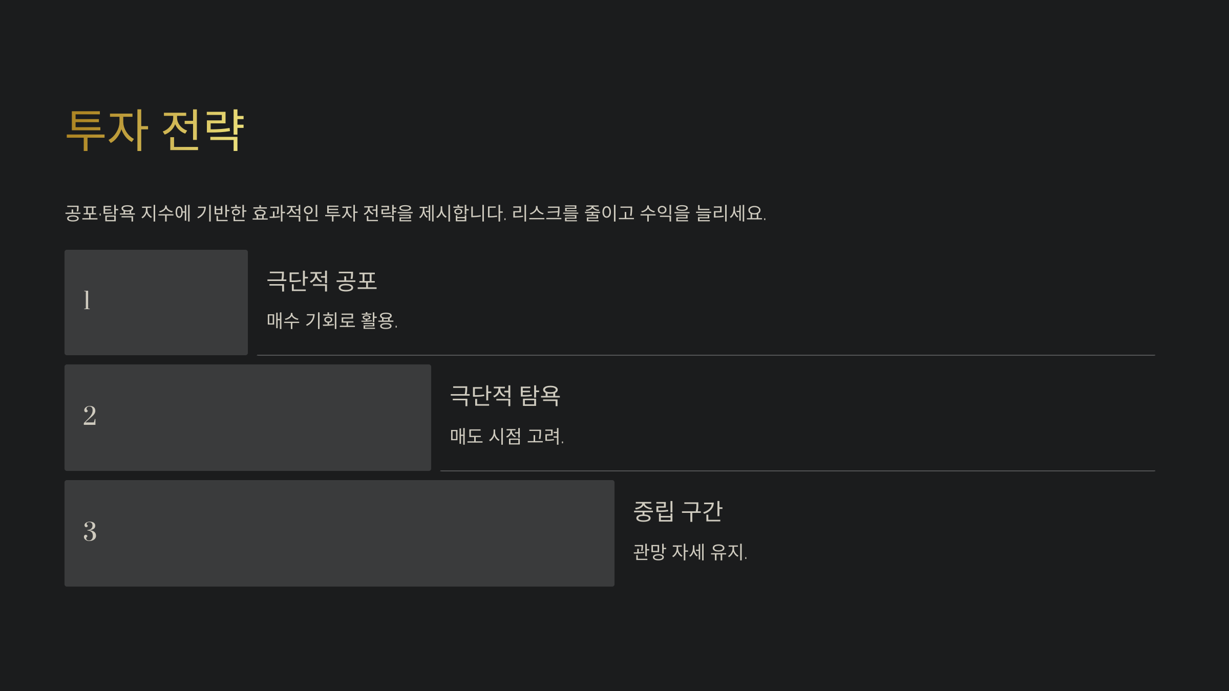 - 📈 탐욕지수 80 이상: 부분 매도 전략 (이익 실현 및 현금 비중 확대)
