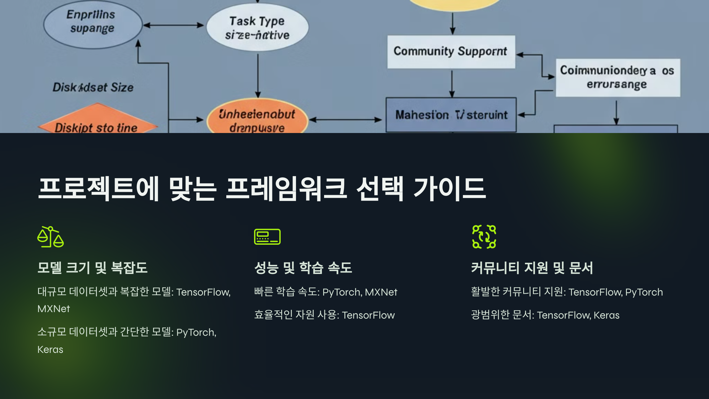 다양한 프레임워크를 비교하고, 어떤 프레임워크가 내 프로젝트에 적합한지 판단해보세요! 다음은 딥러닝 프레임워크 비교입니다. ⚖️