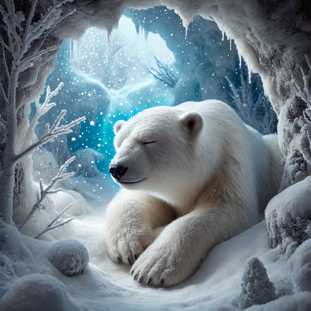 겨울잠, 또는 동면(hibernation)은 대부분의 곰들이 겨울철 먹이 부족과 낮은 온도를 견디기 위해 신진대사를 낮추는 생리적 상태를 말합니다. 이 과정에서 곰들은 활동을 멈추고 동굴이나 은신처에서 에너지를 절약합니다. 그러나 북극곰은 다른 곰과 달리 이런 형태의 동면에 들어가지 않습니다. 북극곰은 혹독한 겨울에도 계속해서 활동하며 먹이를 찾아 나서고, 사냥을 통해 생존에 필요한 에너지를 충당합니다.