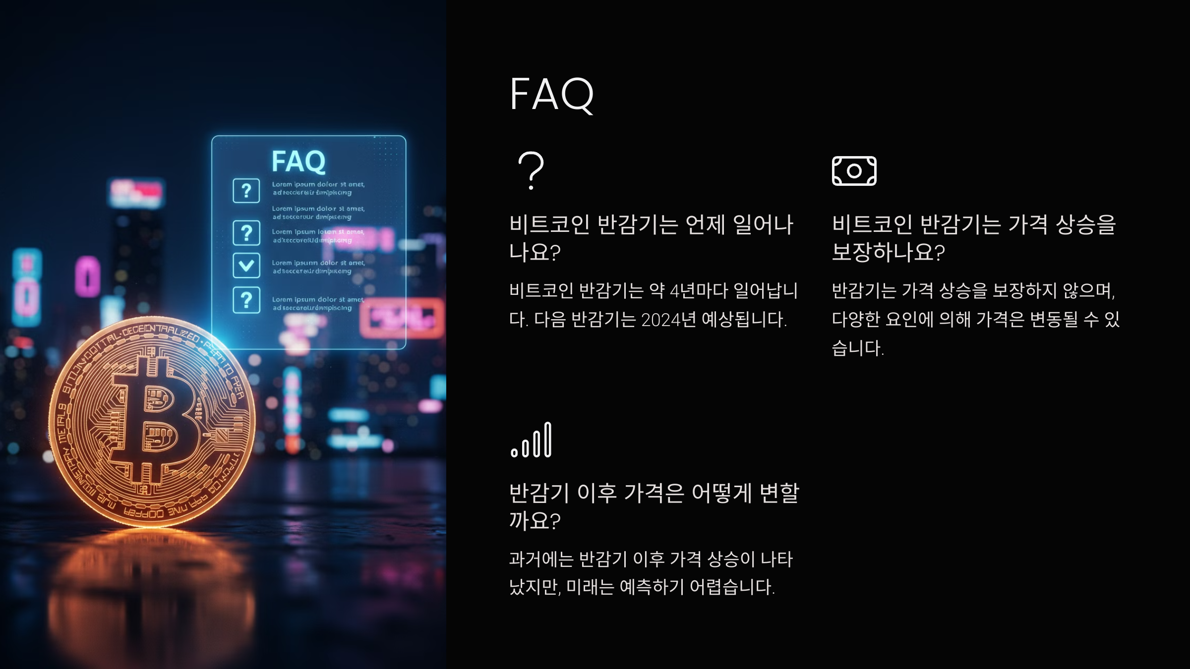 • 🌎 경제 불확실성: 글로벌 경제 위기, 금리 인상 등 외부 요인이 반감기의 효과를 상쇄할 수 있어요.