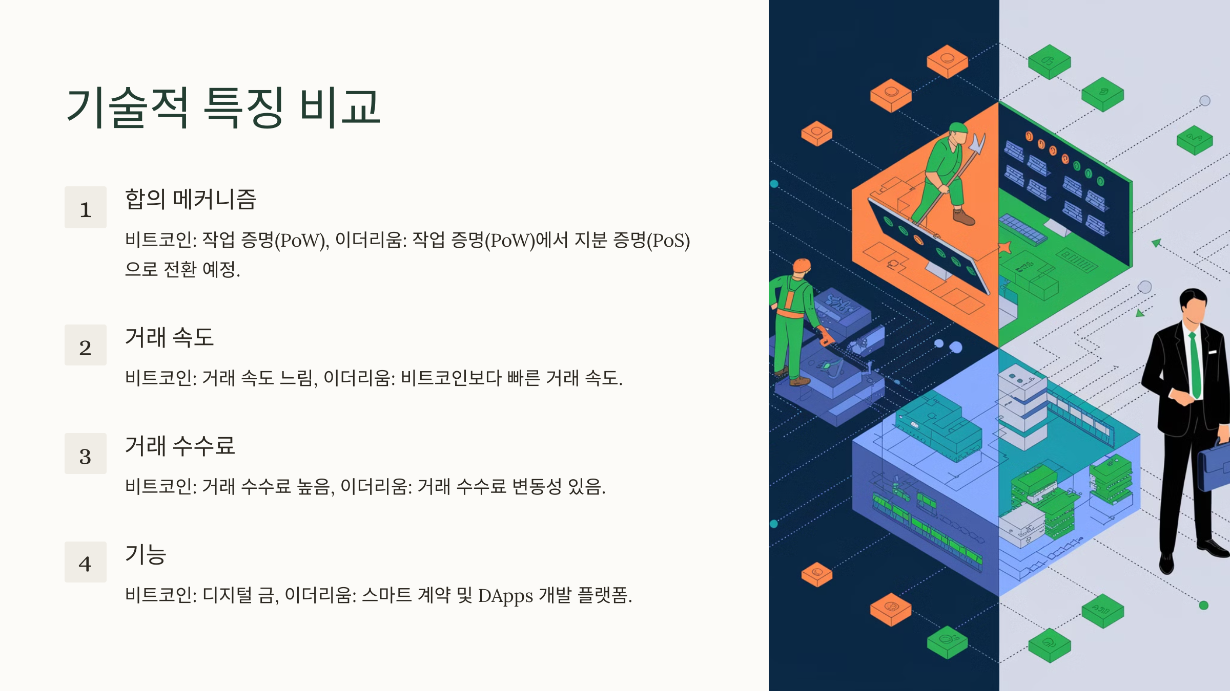 그럼, 비트코인과 이더리움의 기술적 차이를 좀 더 자세히 살펴볼까요? 🧐