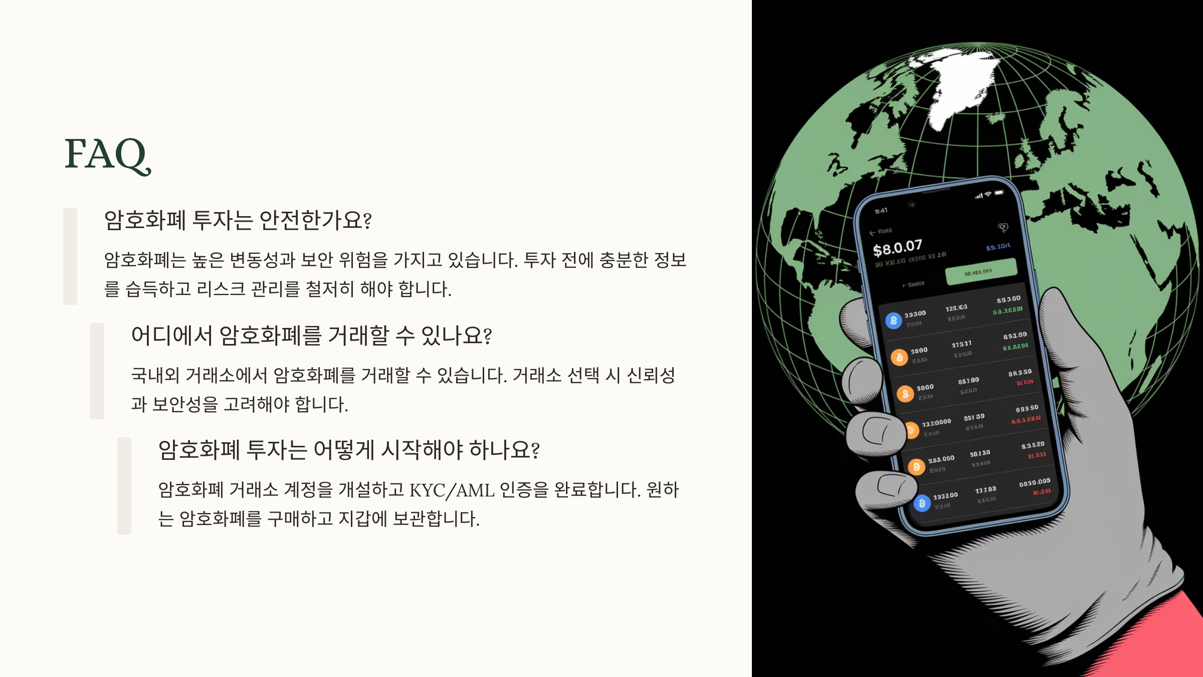 A6. 완전히 대체할 가능성은 낮지만, 디지털 금으로서 역할을 점점 더 강화하고 있어요. 기관 투자자들의 유입이 늘어나면 금과 비슷한 가치 저장 수단이 될 수도 있어요.