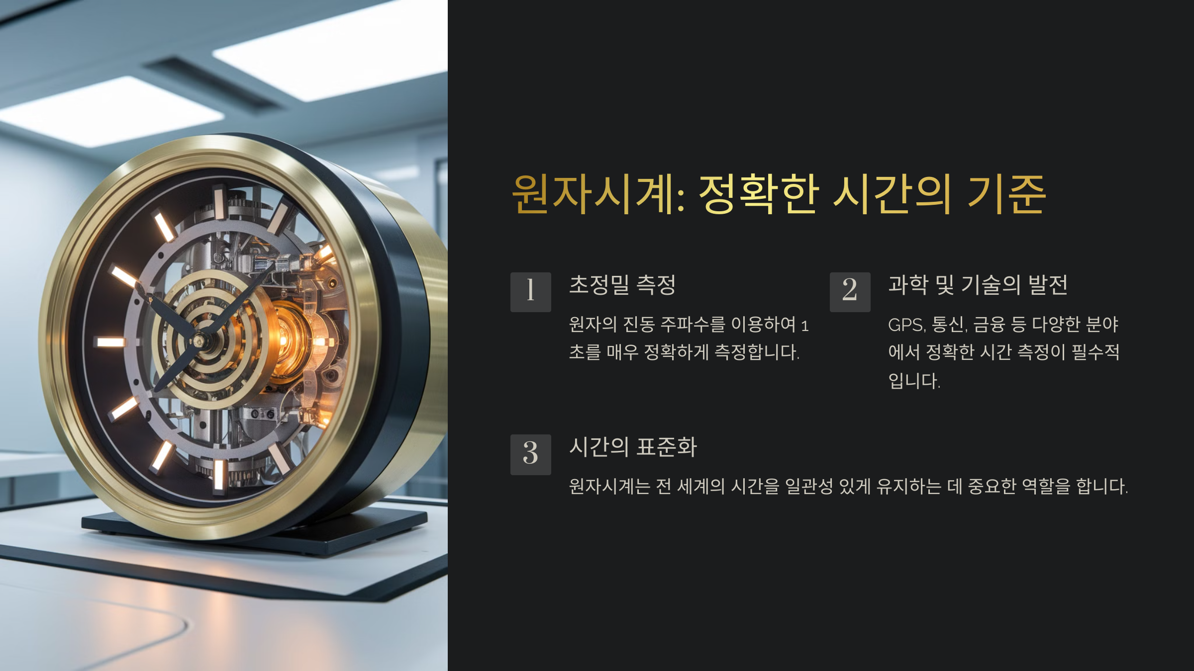 현재 사용되는 원자시계의 정확도는 약 1억 년에 1초의 오차를 가질 정도로 뛰어나요. 이는 우리가 사용하는 일상적인 시계와는 비교가 안 될 만큼 정확한데요, GPS, 인터넷 동기화, 금융 거래 등 정밀한 시간이 필요한 현대 시스템에서는 없어서는 안 되는 기술이에요.