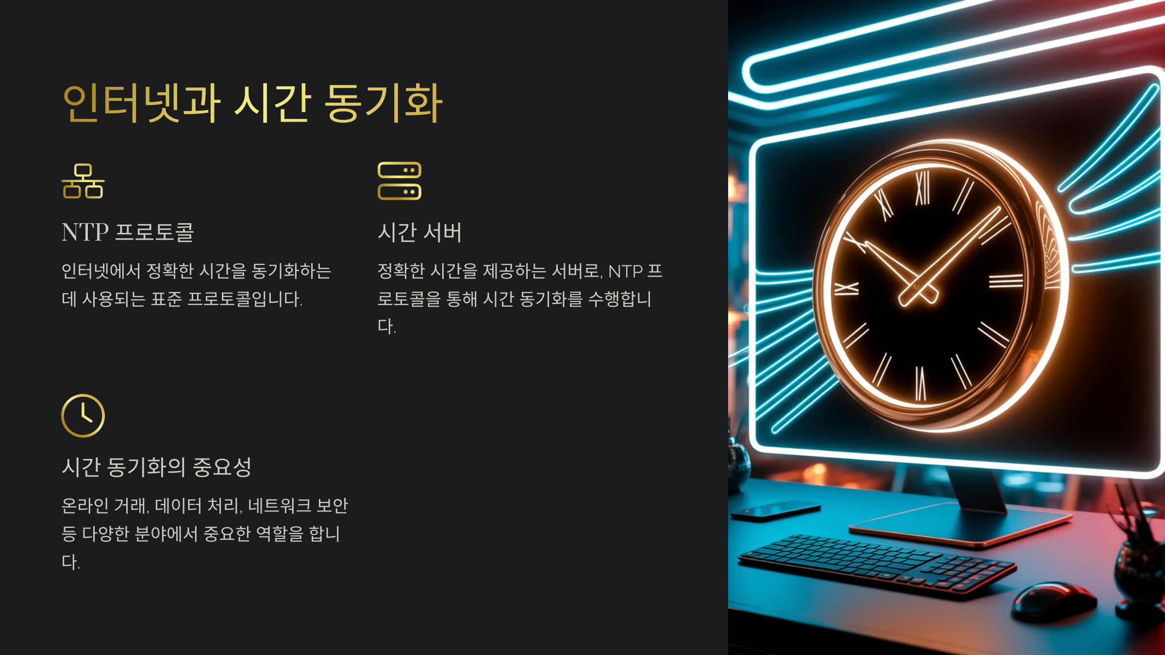 NTP는 인터넷을 통해 시간을 동기화하는 데 사용되는 표준 프로토콜이에요. 이 시스템은 여러 서버와 클라이언트 간의 시간을 비교하고, 미세한 오차를 조정함으로써 전 세계적으로 동일한 시간 정보를 제공해요. 덕분에 우리는 다양한 기기에서 항상 정확한 시간을 확인할 수 있답니다.