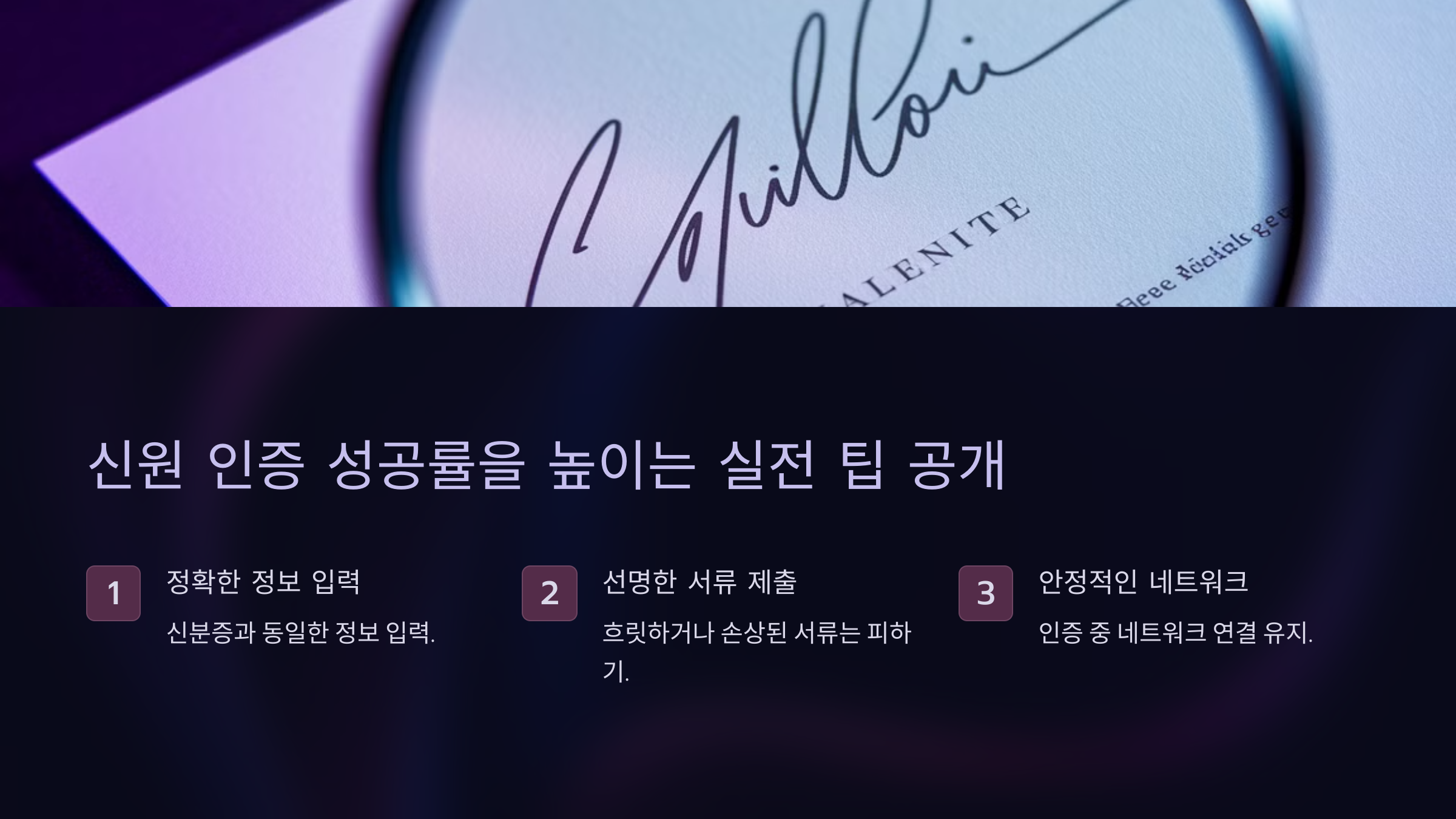 - 🔍 정보 일치 확인: 신분증과 입력한 정보가 정확히 일치하는지 재확인하세요.