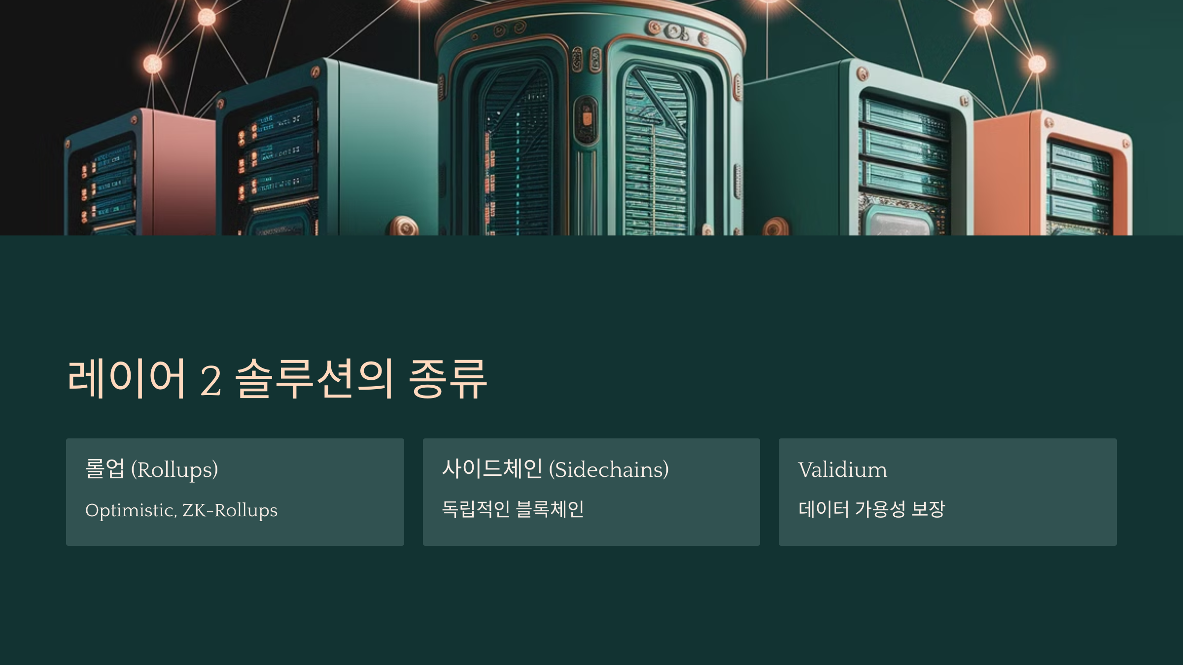 대표적인 레이어 2 솔루션으로는 롤업(Rollups), 플라즈마(Plasma), 채널(State Channels) 등이 있어요. 각 솔루션마다 작동 방식과 특징이 조금씩 다르죠.