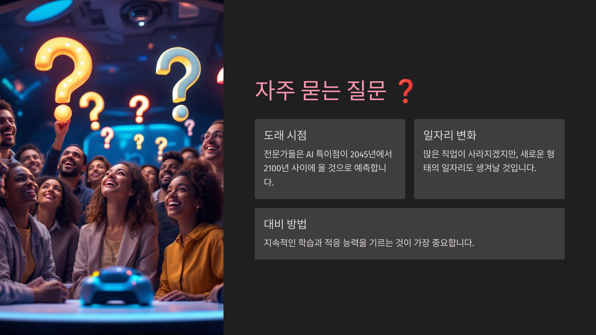 이제 AI 특이점과 관련된 가장 궁금한 질문들을 FAQ로 정리해 볼게요! ❓