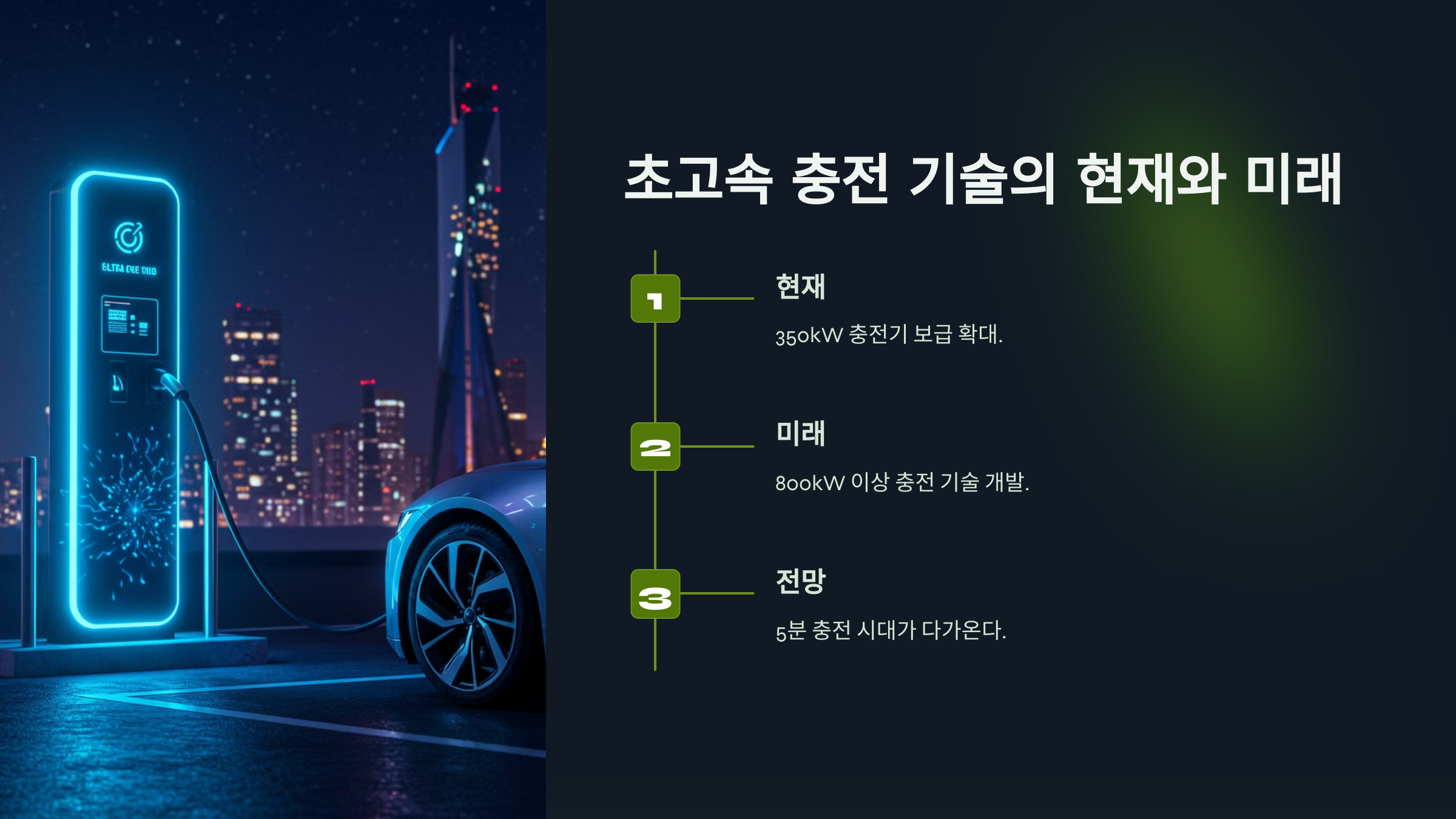| 미래 초고속 충전 | 1000kW 이상 | 5~10분 | 개발 중 |