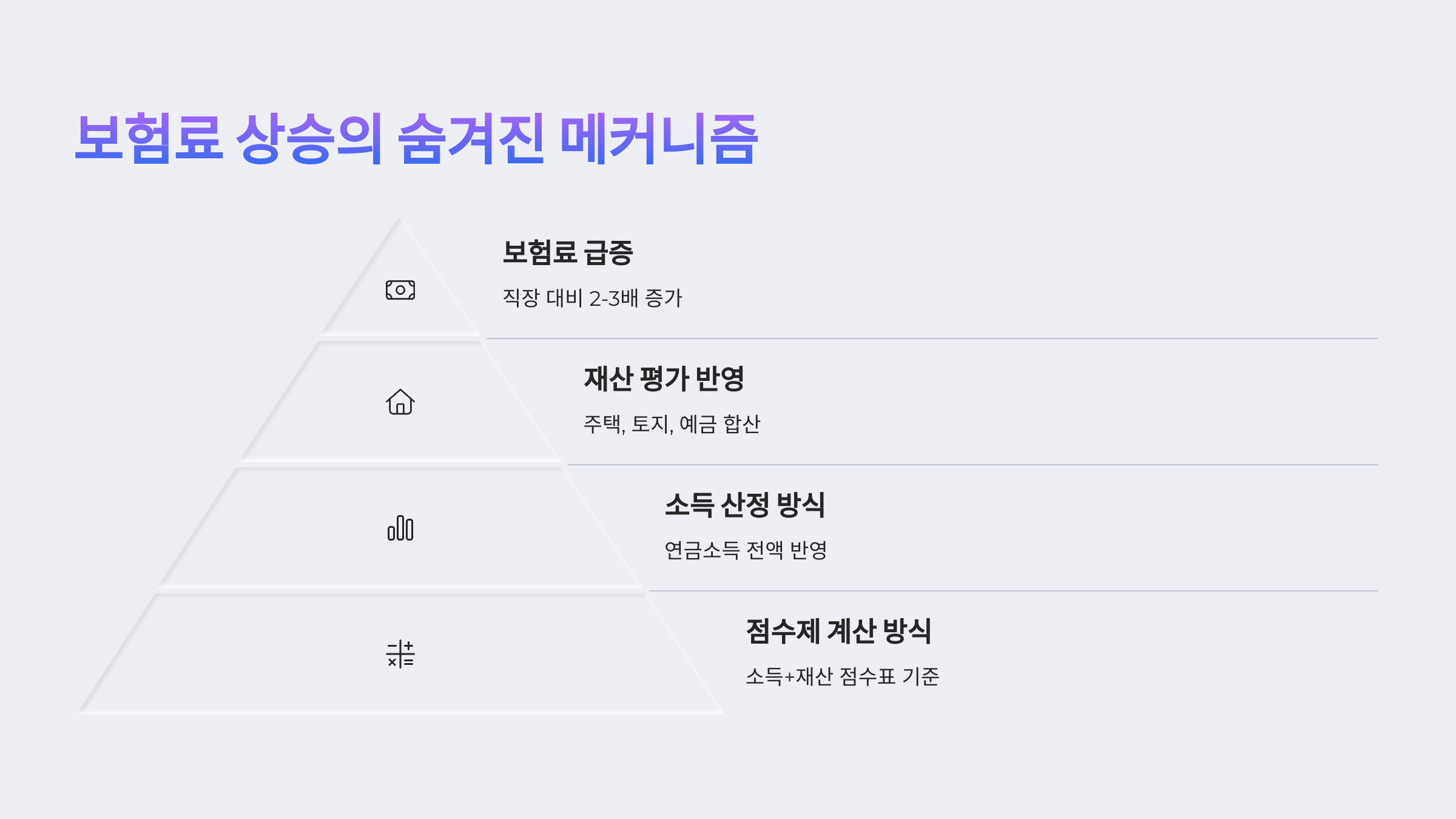 지역가입자의 건강보험료는 소득보다 재산과 차량 보유가 훨씬 크게 작용해요. 그래서 소득이 없는데도 고액 보험료를 내는 경우가 생기죠.