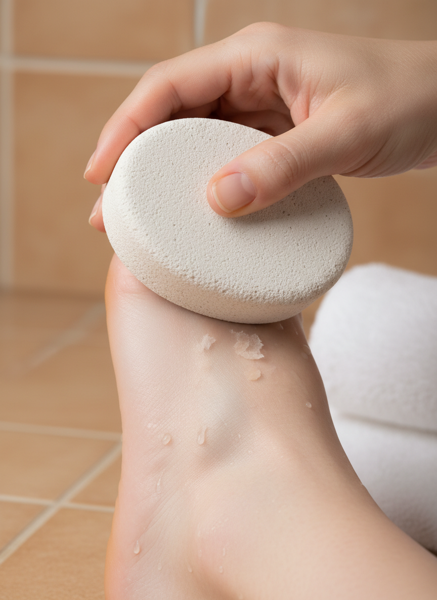 하루 15~20분 정도 따뜻한 물에 발을 불린 후, 부드러워진 티눈 부위를 깨끗한 각질 제거기나 푸석한 돌로 살살 밀어주는 방법이에요. 절대 무리해서 파내려 하거나 힘을 주지 말고, 피부가 손상되지 않도록 조심해야 합니다.
