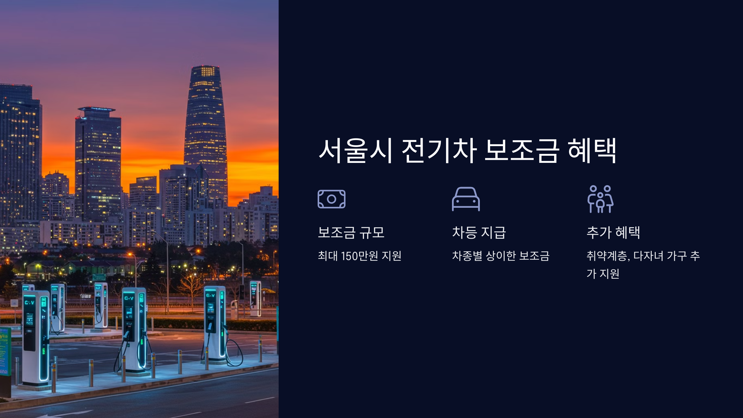 서울에서 전기차를 구매할 경우, 국고 보조금 외에도 서울시에서 추가 보조금을 받을 수 있어요. 서울은 전기차 보급에 적극적이라 타 지역보다 지원 혜택이 괜찮은 편이에요. 🔋💰
