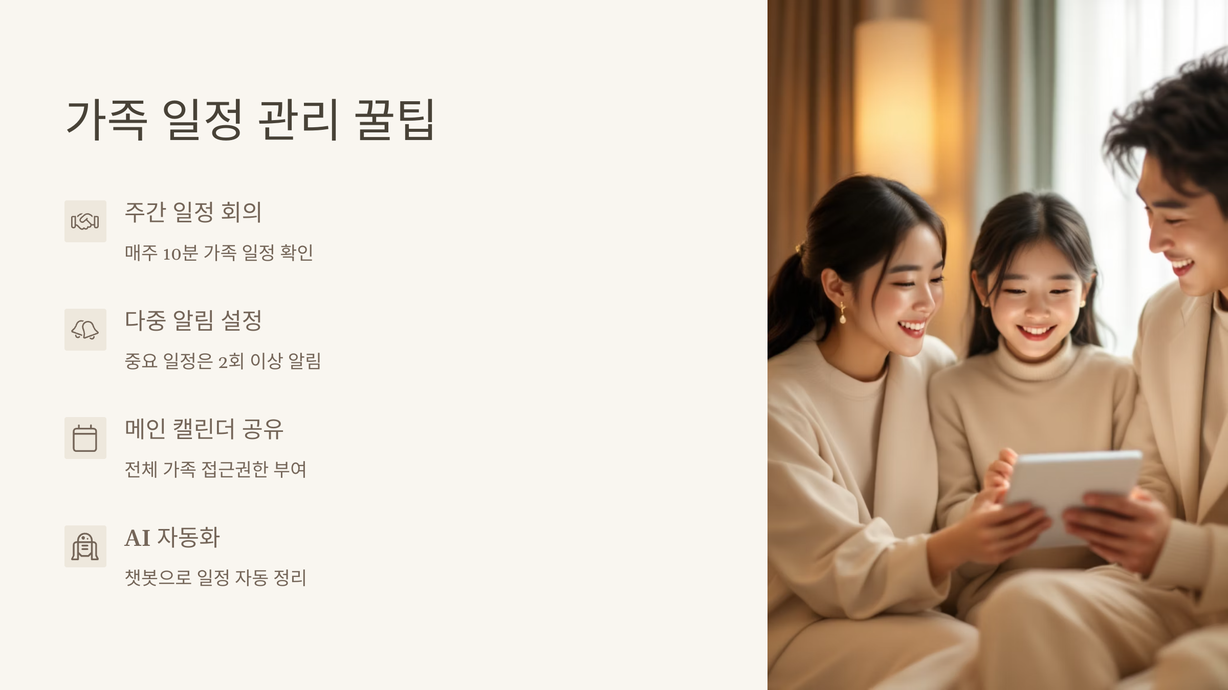 내가 생각했을 때, 가족 모두가 일정을 공유하고 서로의 하루를 이해하는 건 작은 배려의 시작 같아요. 그래서 오늘은 AI로 가족 스케줄을 스마트하게 통합 관리하는 방법을 정리해드릴게요.