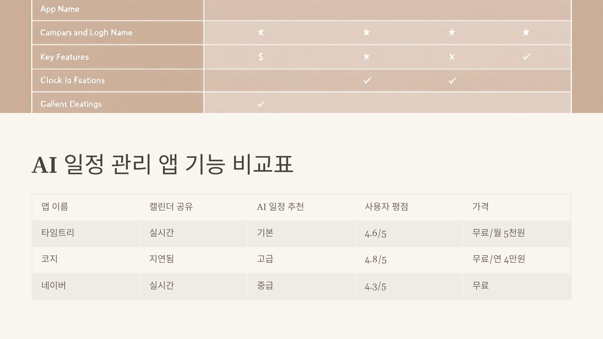 📊 AI 일정 관리 앱 기능 비교표
