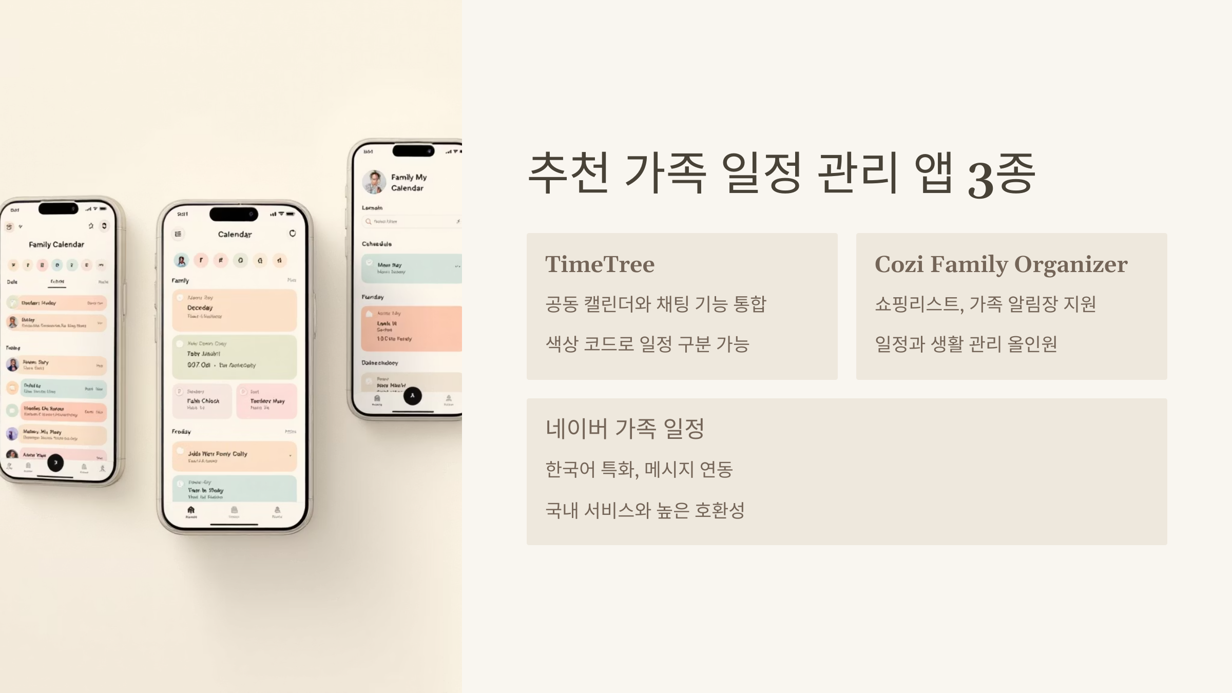 AI를 활용해 가족 일정 통합 관리를 돕는 앱은 다양하지만, 특히 다음 세 가지가 기능·접근성 면에서 사용자가 많아요. 실제 이용자 평을 기반으로 간단히 정리해볼게요.