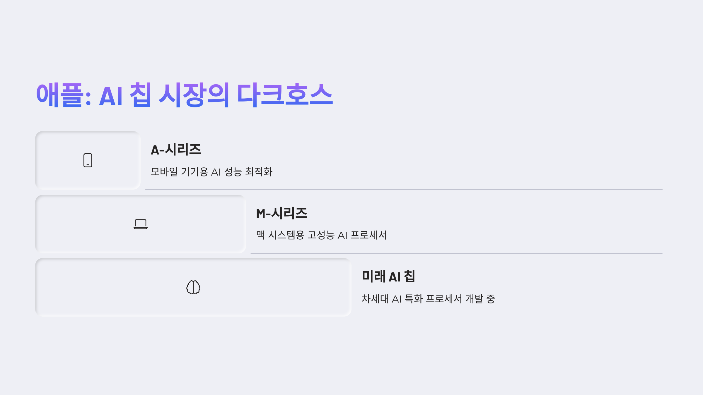 이제 애플의 AI 반도체 전략을 살펴볼까요? 🍏