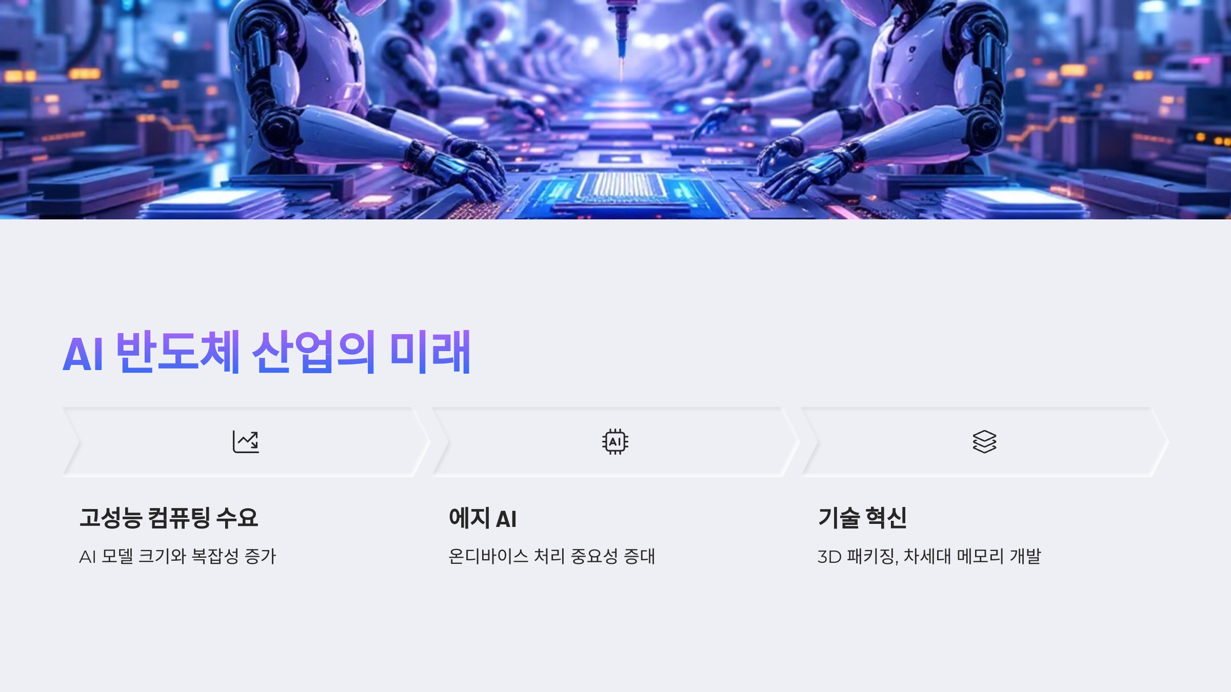 A5. AI 반도체 시장은 계속 성장할 전망이에요. 특히, 엣지 AI, 저전력 고성능 칩, 맞춤형 AI 칩 기술이 주요 트렌드로 떠오르고 있어요.