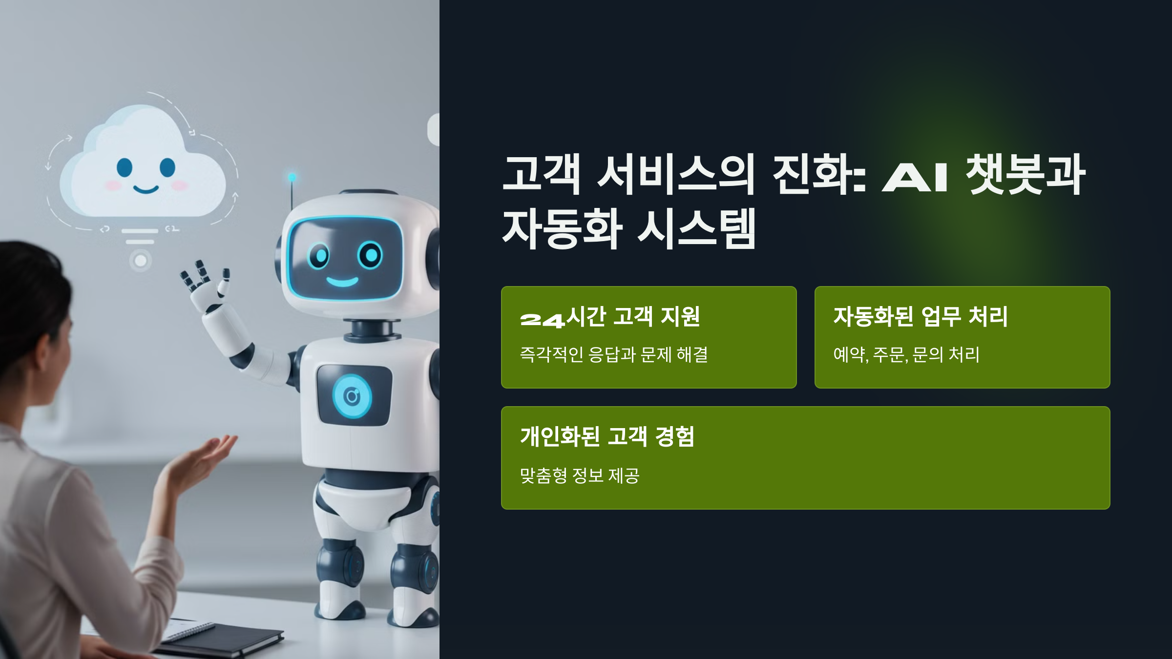 AI 챗봇은 24시간 실시간 고객 응대를 제공하며, 문의 사항을 신속하게 해결할 수 있어요. 기업은 AI 챗봇을 통해 고객 서비스 비용을 절감하고, 보다 일관된 서비스를 제공할 수 있어요. 🤖