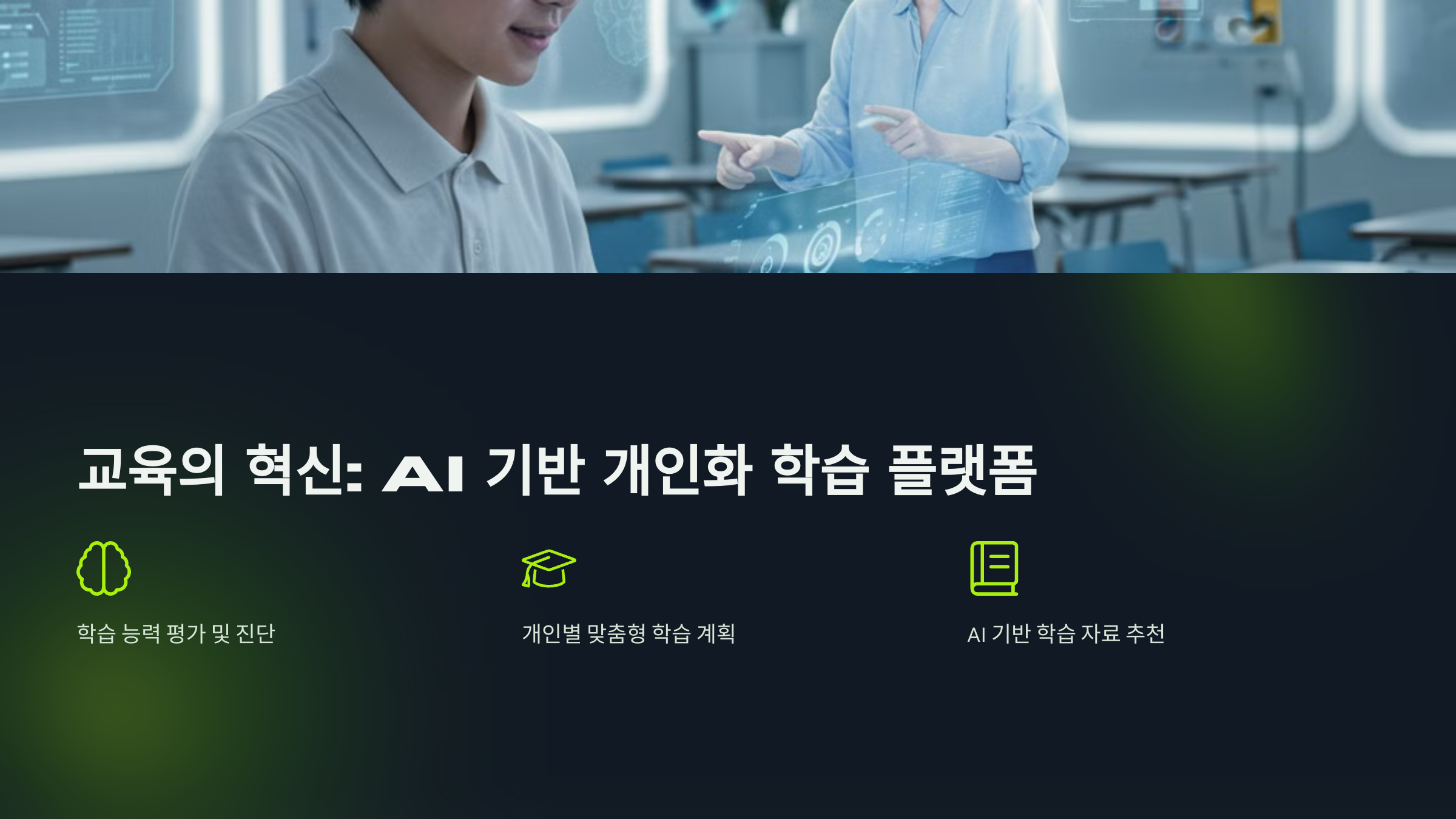 ✔️ AI가 학생의 학습 패턴을 분석하고 개인 맞춤형 커리큘럼 제공 ✔️ AI 튜터가 실시간으로 질문에 답변하고 학습 피드백 제공 ✔️ AI 기반 외국어 학습 및 발음 교정 서비스