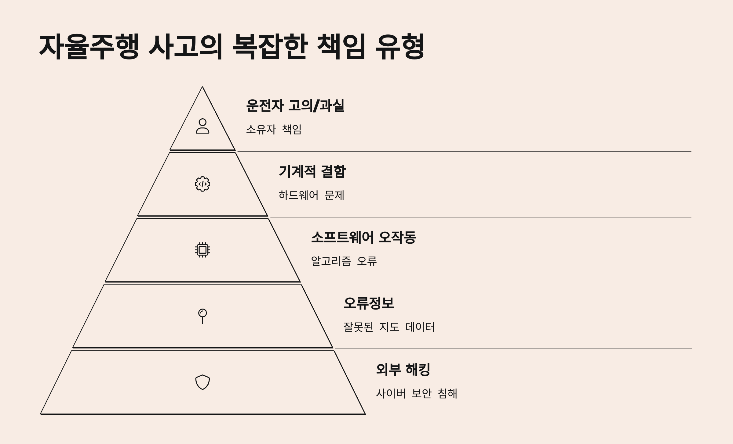 내용이 복잡했다면 이 정리만은 꼭 기억해두세요. 자율주행차 사고 책임 구조는 다음과 같은 기준에 따라 나뉘어요.