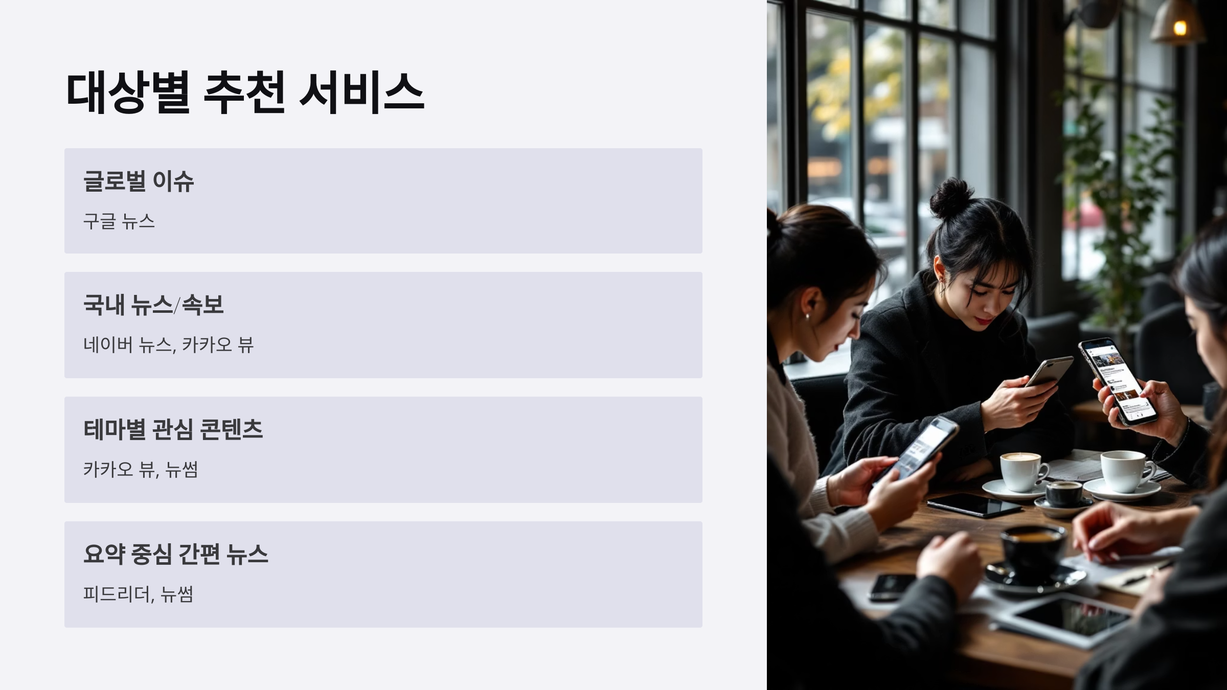 이제는 단순한 ‘뉴스 모아보기’ 시대가 아니라, “내가 원하는 정보를 요약하고 정제해주는 스마트 큐레이션 서비스”가 트렌드예요.