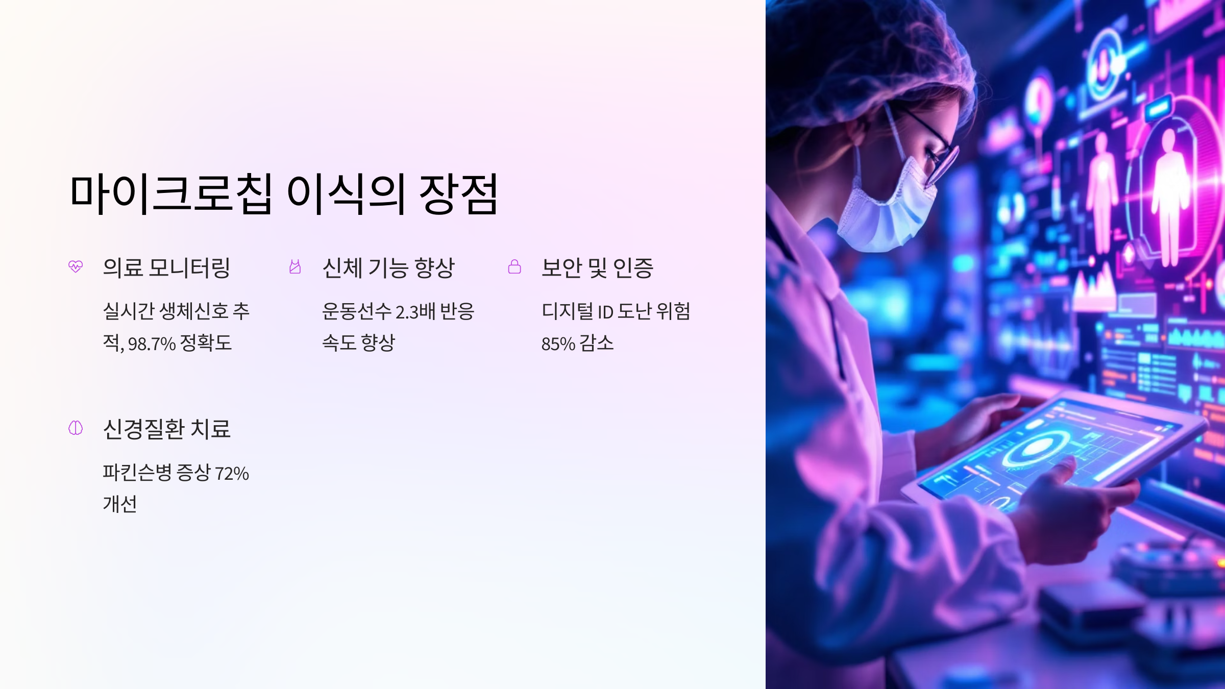 오늘은 마이크로칩 이식 기술의 정의, 장단점, 윤리적 쟁점을 정리하고, 앞으로 우리가 어떤 선택을 해야 할지 함께 생각해보려고 해요. ⚙️🤔