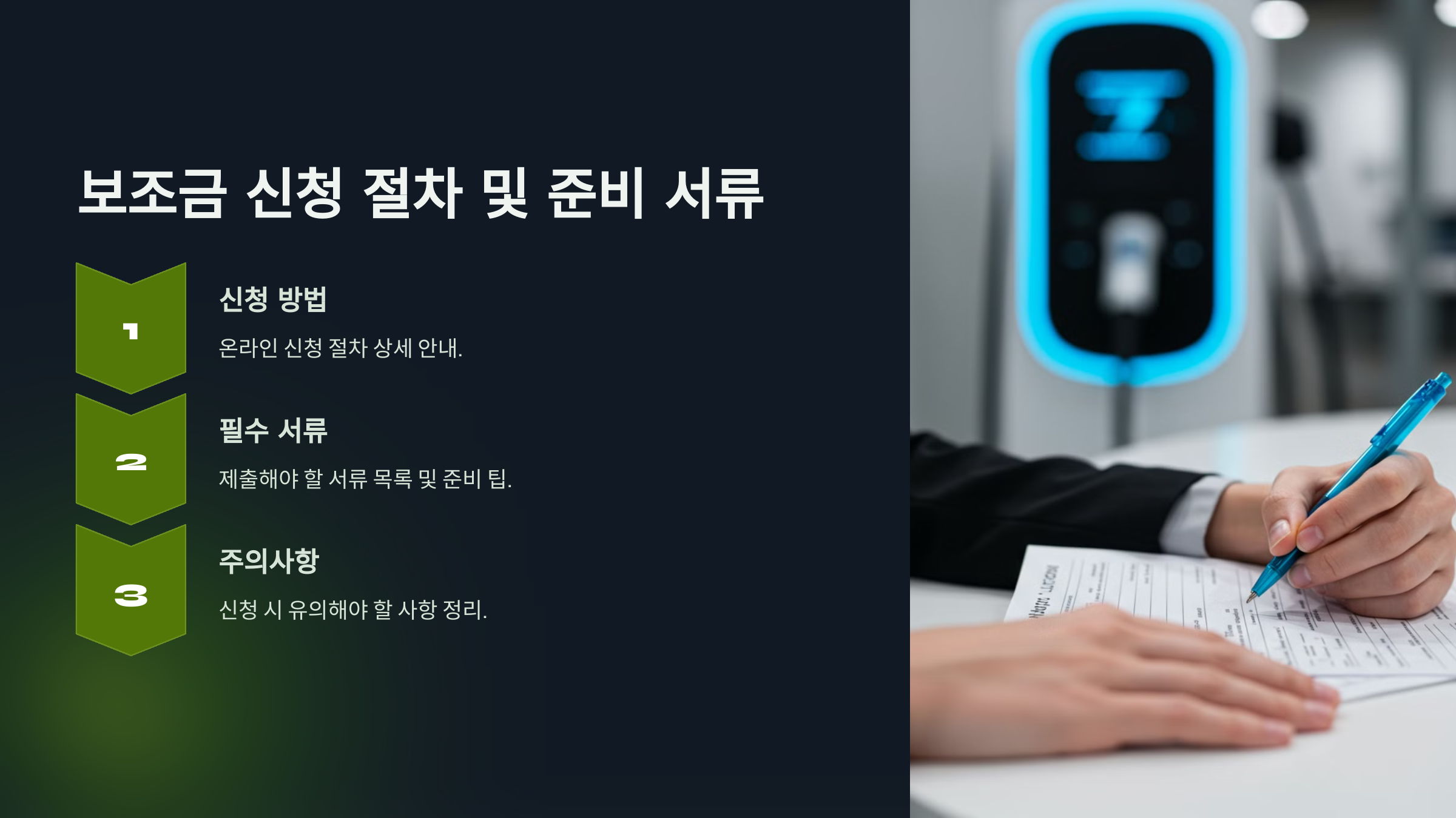 📝 전기차 보조금 신청은 차량을 구매한다고 해서 자동으로 지급되는 게 아니에요! 신청 절차를 제대로 알아두고 준비해야 빠르게 보조금을 받을 수 있어요.
