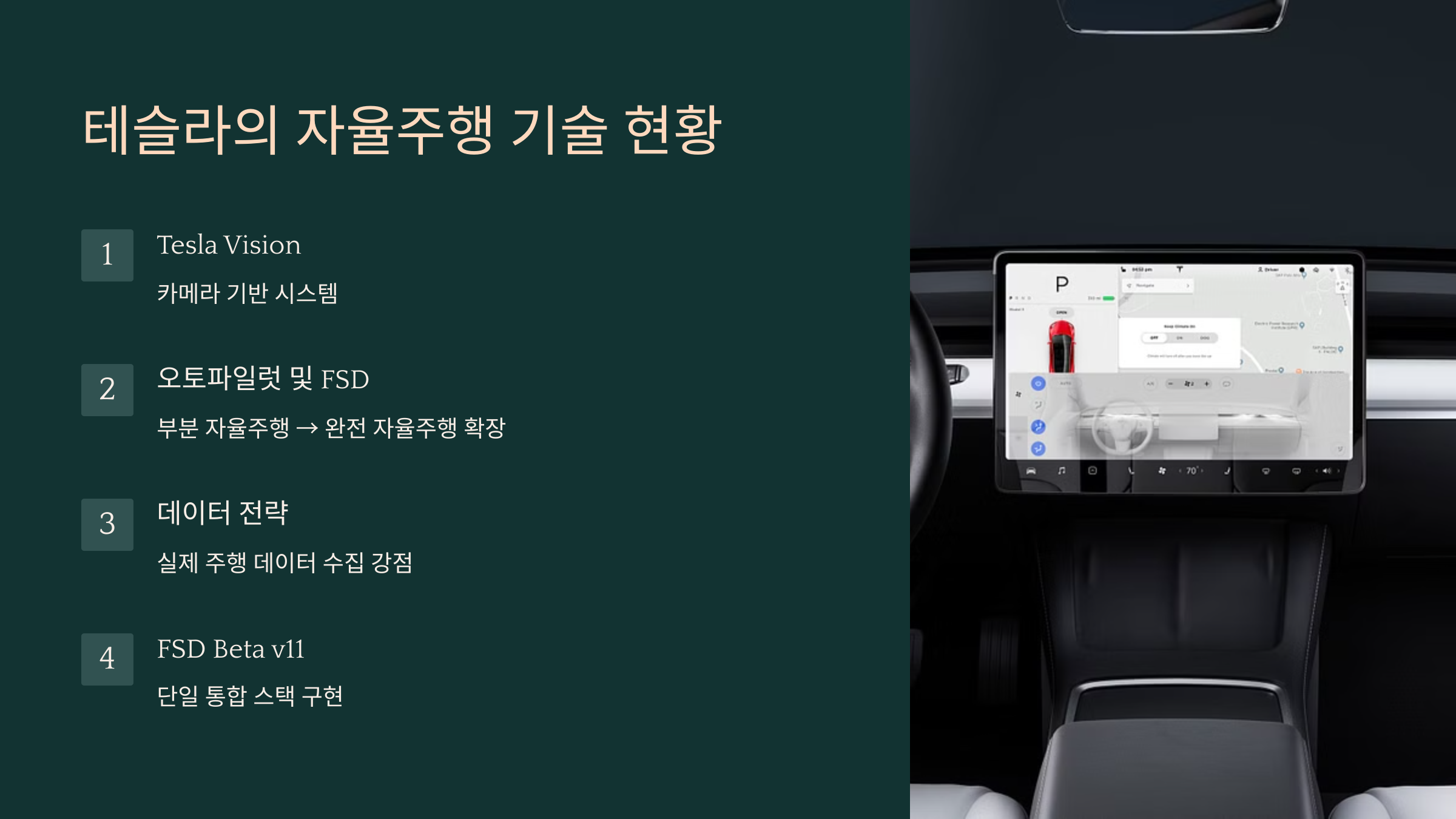 하지만 테슬라의 기술이 완전한 자율주행(레벨 5)에 도달한 것은 아니며, 아직 운전자의 개입이 필요한 상태예요. 또한, 사고 사례 및 규제 문제로 인해 논란도 많아요. ⚠️