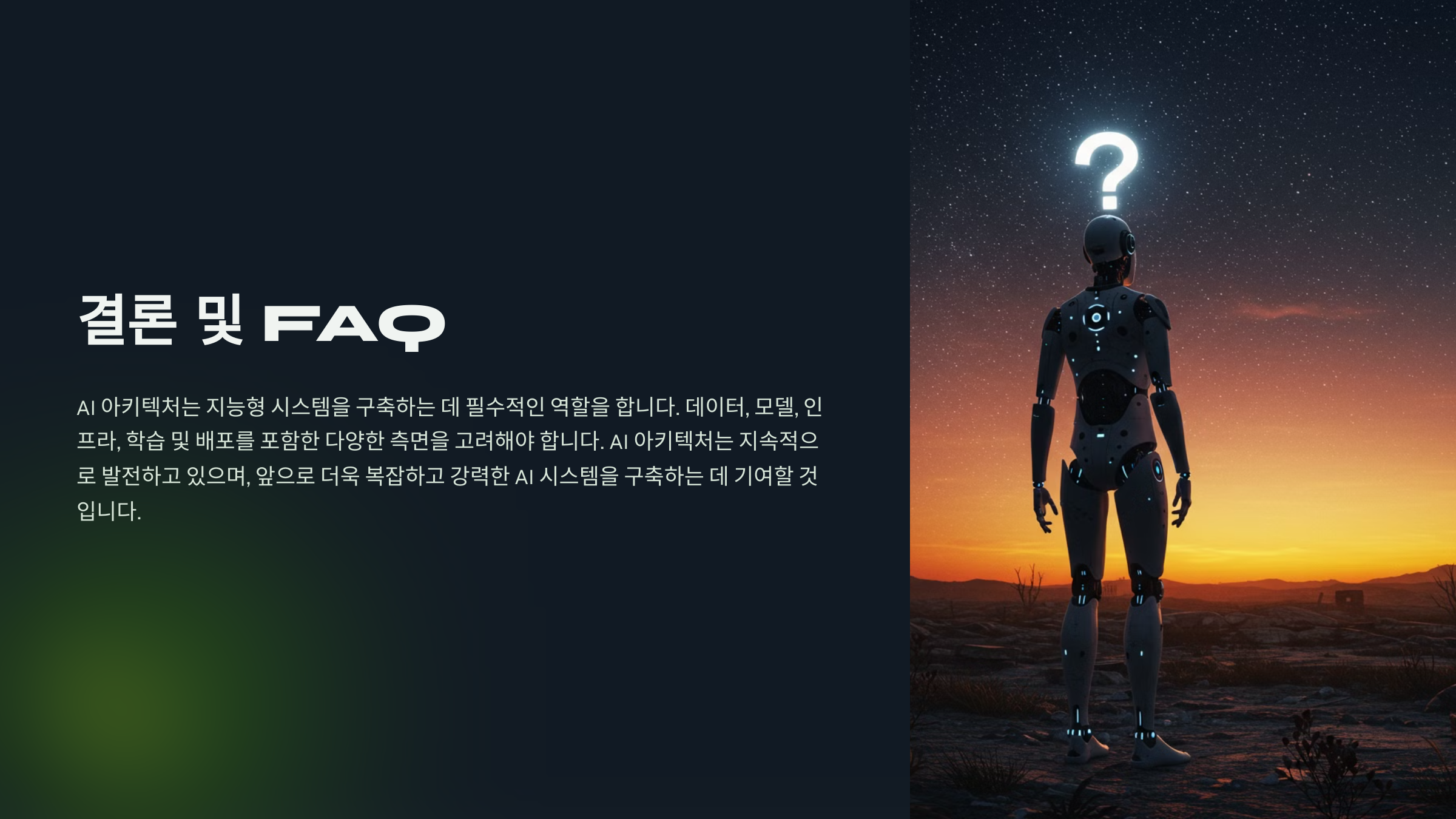 AI 아키텍처는 이러한 계층별 요소들이 유기적으로 연결되면서 강력한 기능을 발휘해요. 이후 섹션에서 AI 모델, 하드웨어, 실제 적용 사례 등을 더 자세히 알아볼게요! 🚀