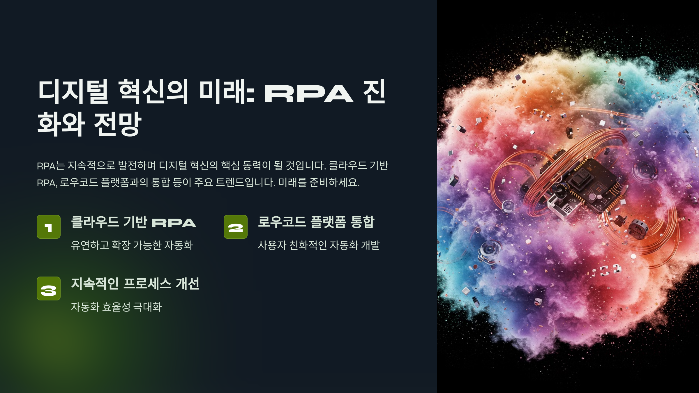 다음 섹션에서는 RPA의 미래와 발전 가능성에 대해 이야기해볼게요! 🚀